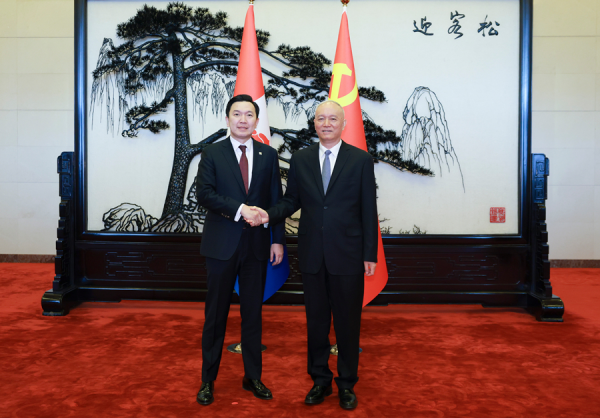 2026年3月24日,中共中央政治局常委、中央书记处书记蔡奇在北京会见由蒙古人民党主席、国家大呼拉尔主席乌其尔勒率领的蒙古人民党代表团。